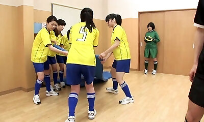 Two Fit Brown-haired Babes Fucking Coach In The Gym