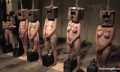 Two dudes hate pussies and want to punish brunette and ginger sex-slaves