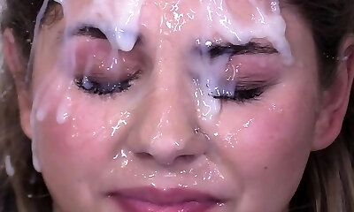 Massive facial cumshot for dirty blondie after hardcore gangbang