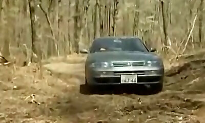 A japanese babe frigging her pussy in a car